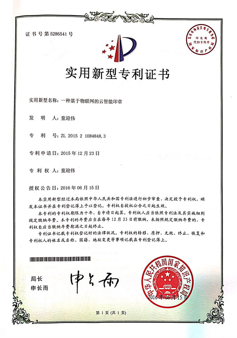 公司原創(chuàng)發(fā)明一體式智能印章技術,引領國內外新一代智能印簽創(chuàng)新變革。獲中日韓多項發(fā)明專利,徹底解決了實體印章和電子印簽管控的社會難題,獲國務院國資委全國央企熠星二等獎。公司聯(lián)合國家信息安全產品認證中心、公安部三所、信通院、中國印章協(xié)會等,主導起草了行業(yè)首個智能印章安全認證標準和智能印章產品標準,引領了智能印章行業(yè)發(fā)展。